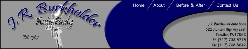 quickly. Any body shop can remove dents....at J.R. Burkholder Auto Body,Inc. we remove doubts. |